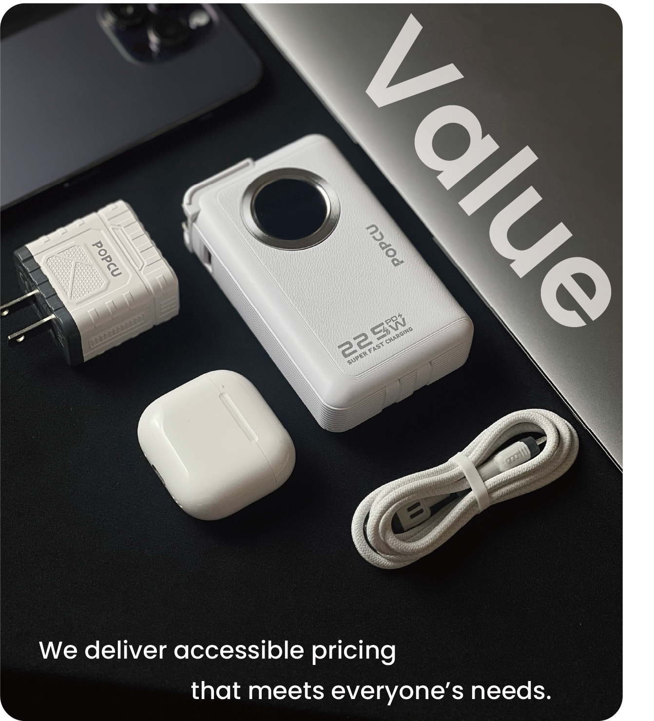 Our product line covers a variety of categories, including fast-charging power banks, chargers, cables,